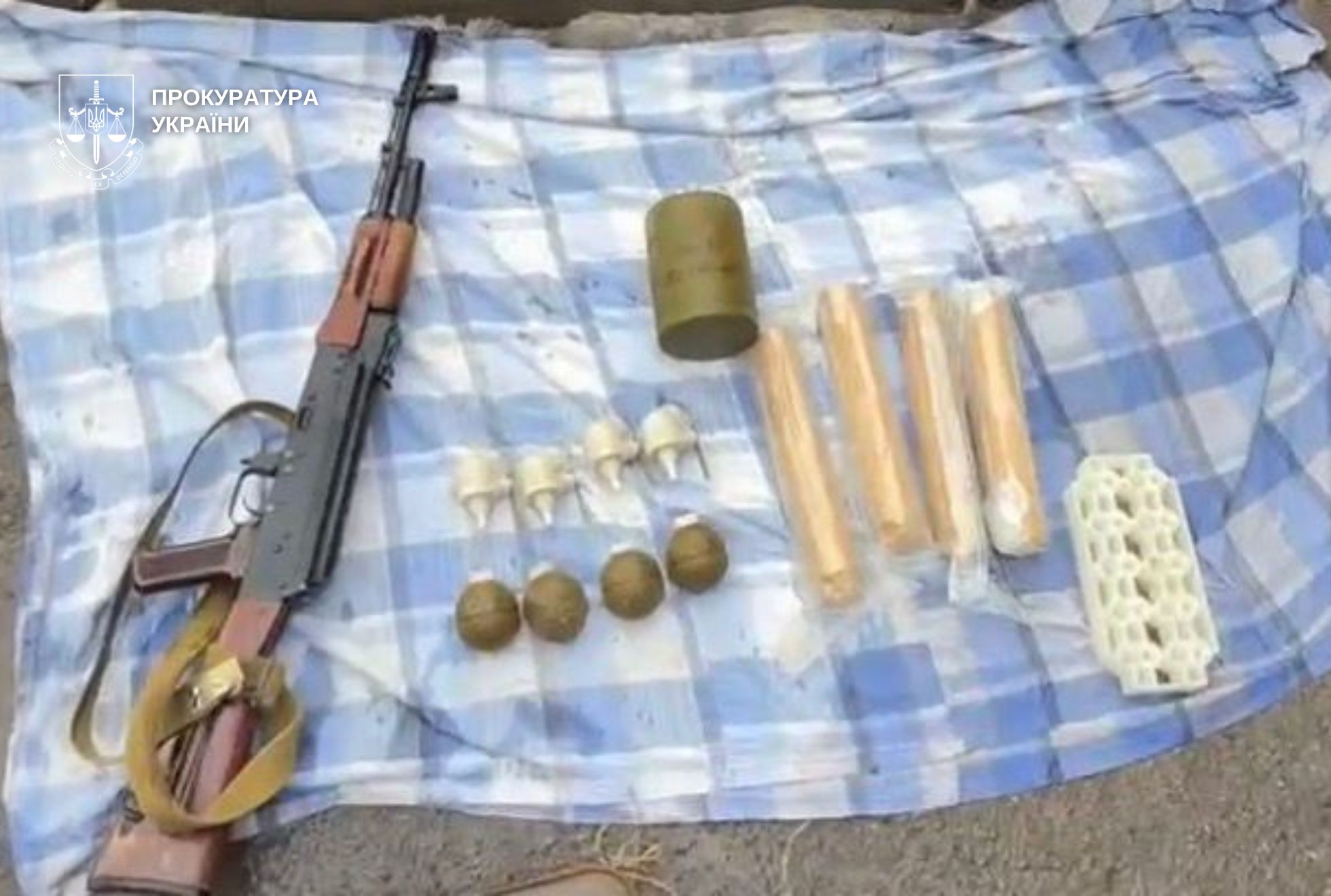 У чоловіка вилучили автомат, чотири гранати з підривачами, міну, реактивні освітлювальні патрони, а також близько 700 набоїв різного калібру.
