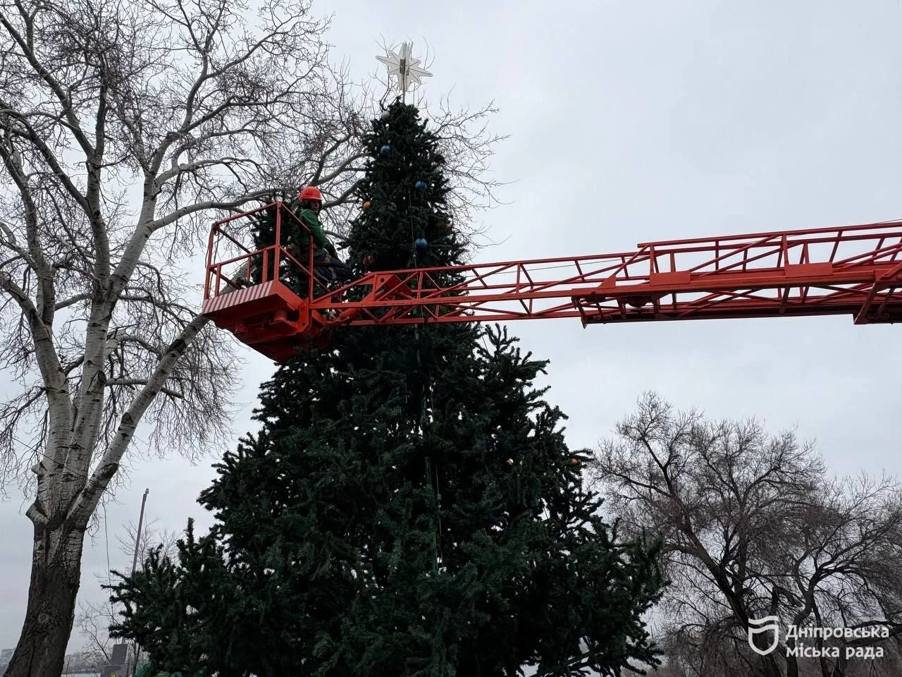 Дніпро розпочав підготовку до Різдва: у парках встановлюють ялинки та святкові локації