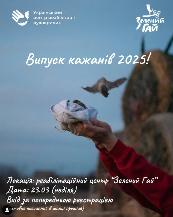 23 березня на екофермі «Зелений Гай» відбудеться щорічний випуск кажанів. Це традиційна подія, яку вже 13 років проводить Український центр реабілітації рукокрилих.