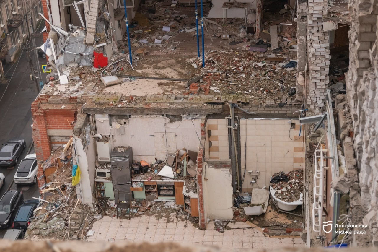 На Виконкомівській у Дніпрі триває відновлення будинку, зруйнованого російською ракетою