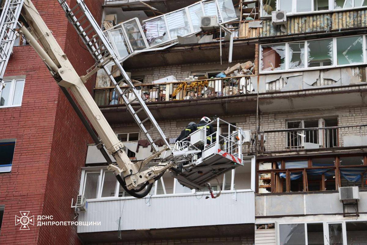 «У найбільш постраждалому 14-поверховому будинку розтрощено близько 300 вікон, пошкоджена покрівля. Фахівці ще обстежуватимуть тримальні конструкції», – зазначив міський голова Дніпра Борис Філатов.