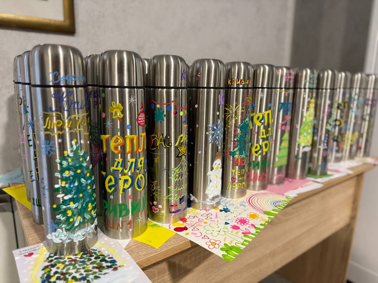 «Тепло для героїв»: у Кривому Розі діти розписують термоси для військових