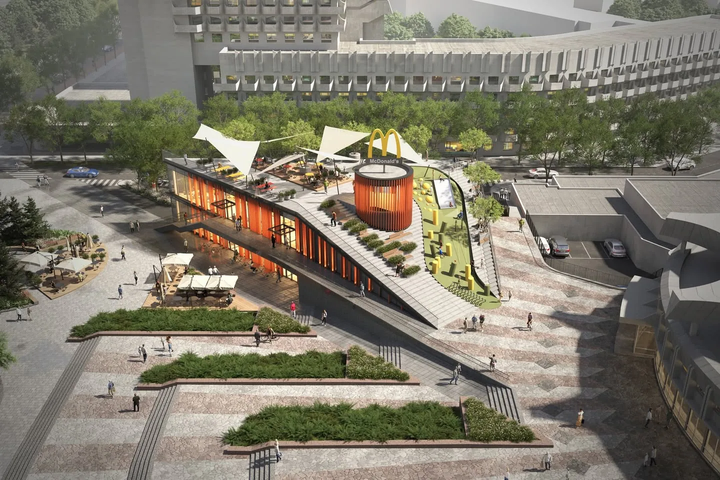 Серед переможців у категорії «Будівлі, комплекси та споруди (проєкт)» – McDonald’s на Січеславській Набережній, 33а. Архітектори: Сергій Филимонов, Наталія Каширіна, Анна Третяк.