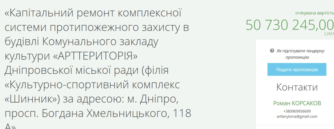 У Дніпрі на ремонт системи пожежного захисту Шинника хочуть виділити понад 50 млн грн
