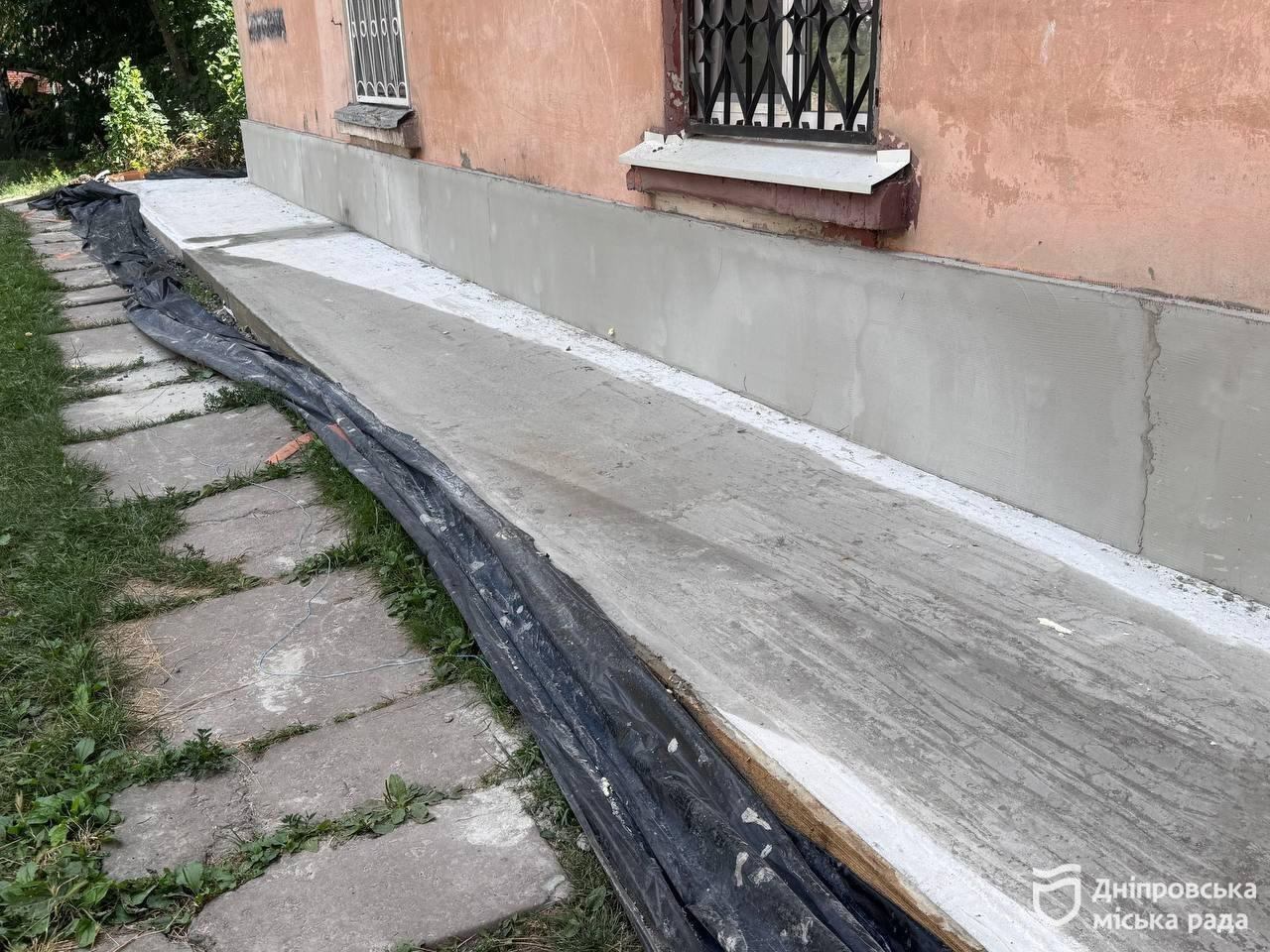 У Дніпрі триває оновлення вимощення та цоколів багатоповерхівок. Роботи виконують зокрема на вул. Будівельників, 5-Б, де через зруйноване асфальтне покриття підтоплювався фундамент. Після звернення мешканців на місці провели обстеження та вирішили повністю замінити старе покриття. Зараз на об’єкті вже утеплили цоколь, далі його пофарбують.