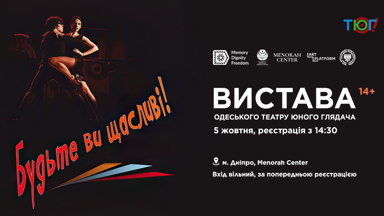 5 жовтня о 15:00 у залі «Синай» відбудеться вистава Одеського академічного театру юного глядача «Будьте ви щасливі!». Про це повідомляє Menorah Center.
