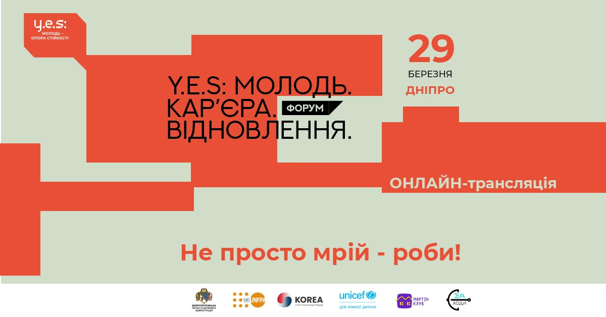 Форум «Y.E.S: Молодь. Кар’єра. Відновлення» пройде 29 березня. Початок о 10:00.
