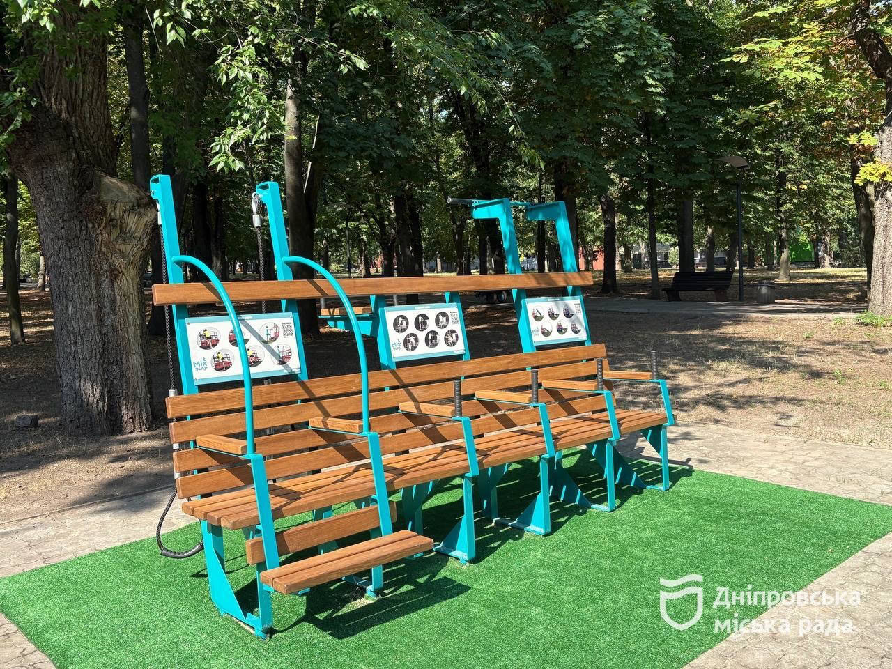 У парку Дніпра з’явилась спортивна лавка-тренажер, на якій можна виконувати понад 250 вправ