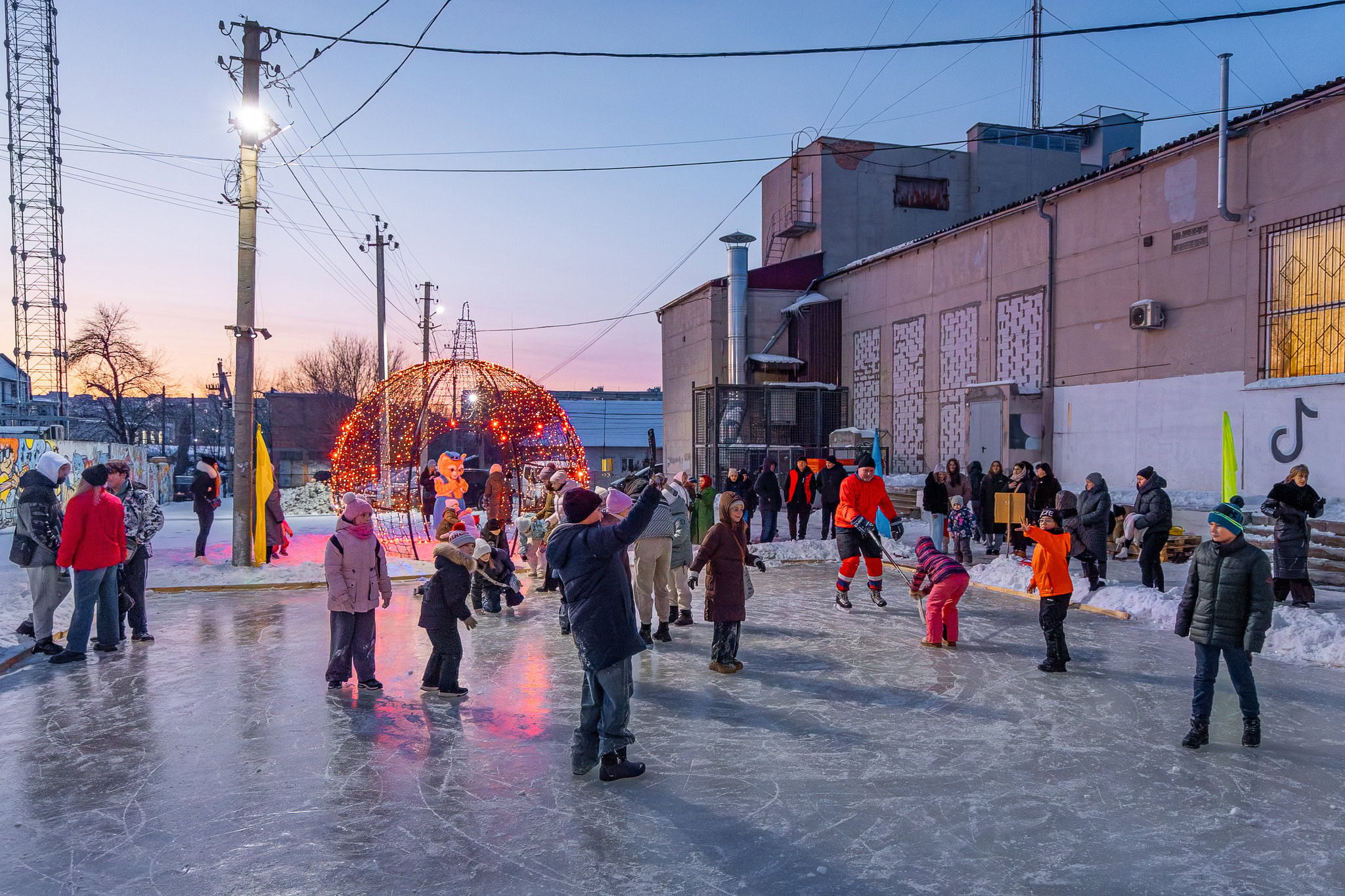 Біля ковзанки облаштували зони відпочинку з лавками для перевзування та перепочинку. Центральним елементом зимової локації стала велика новорічна куля. Окрему увагу приділили безпеці – на вході розмістили інформаційні матеріали з правилами користування льодом та застереженнями.