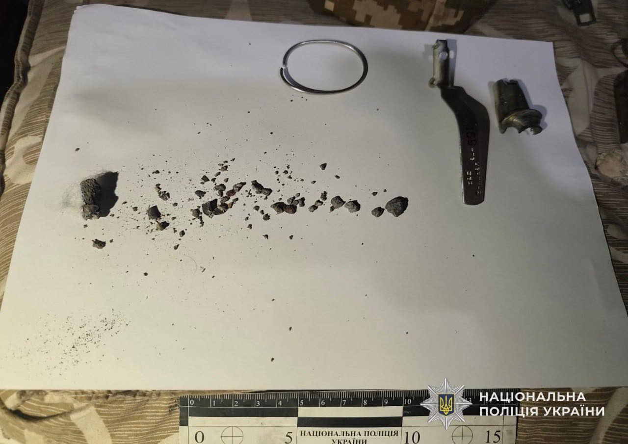 На місці вибуху поліцейські вилучили кільце від гранати та інші речові докази. Підозрюваного затримали в порядку статті 208 Кримінального процесуального кодексу України.